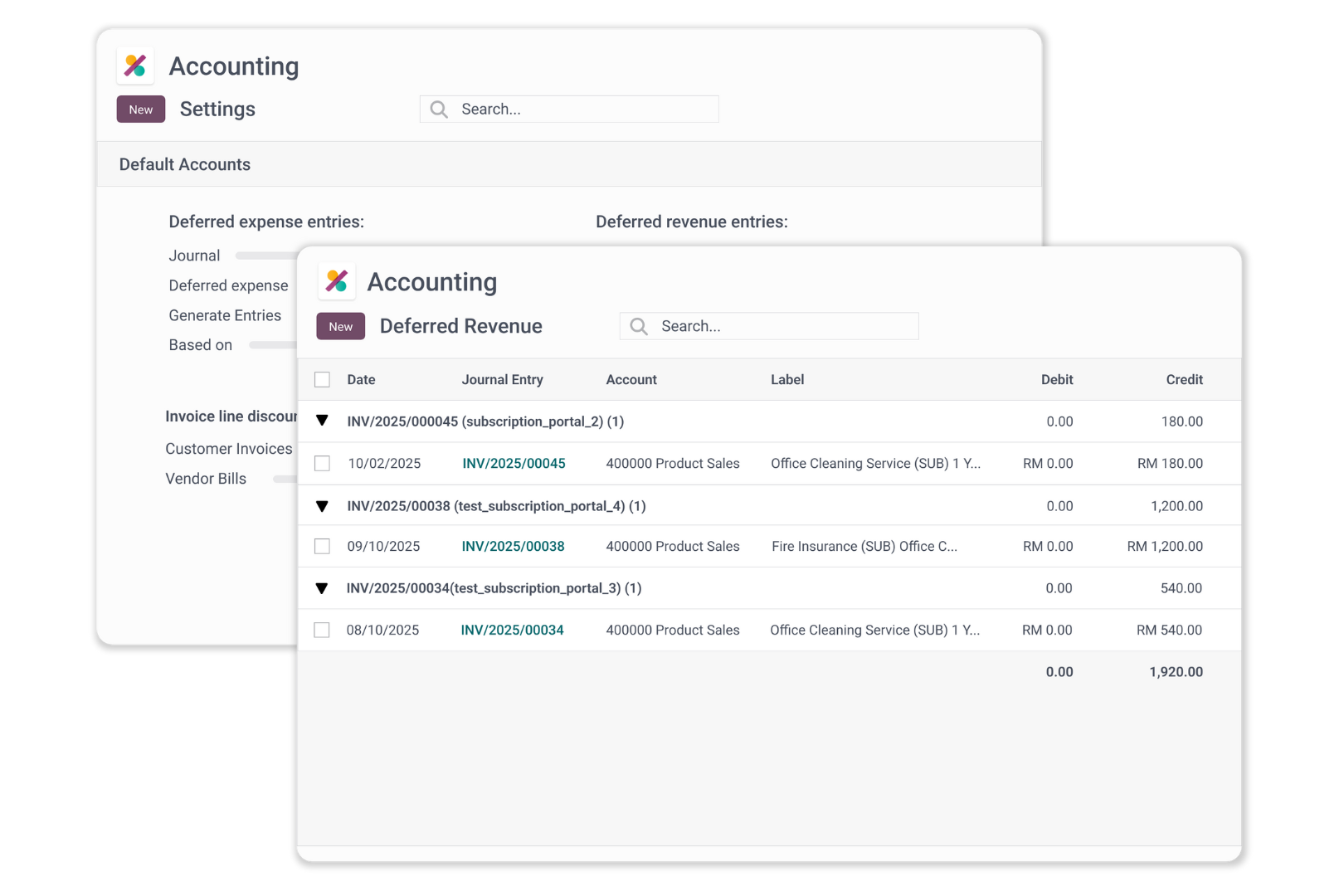 The Odoo Accounting app reports your deferred expenses and revenue reported accurately.